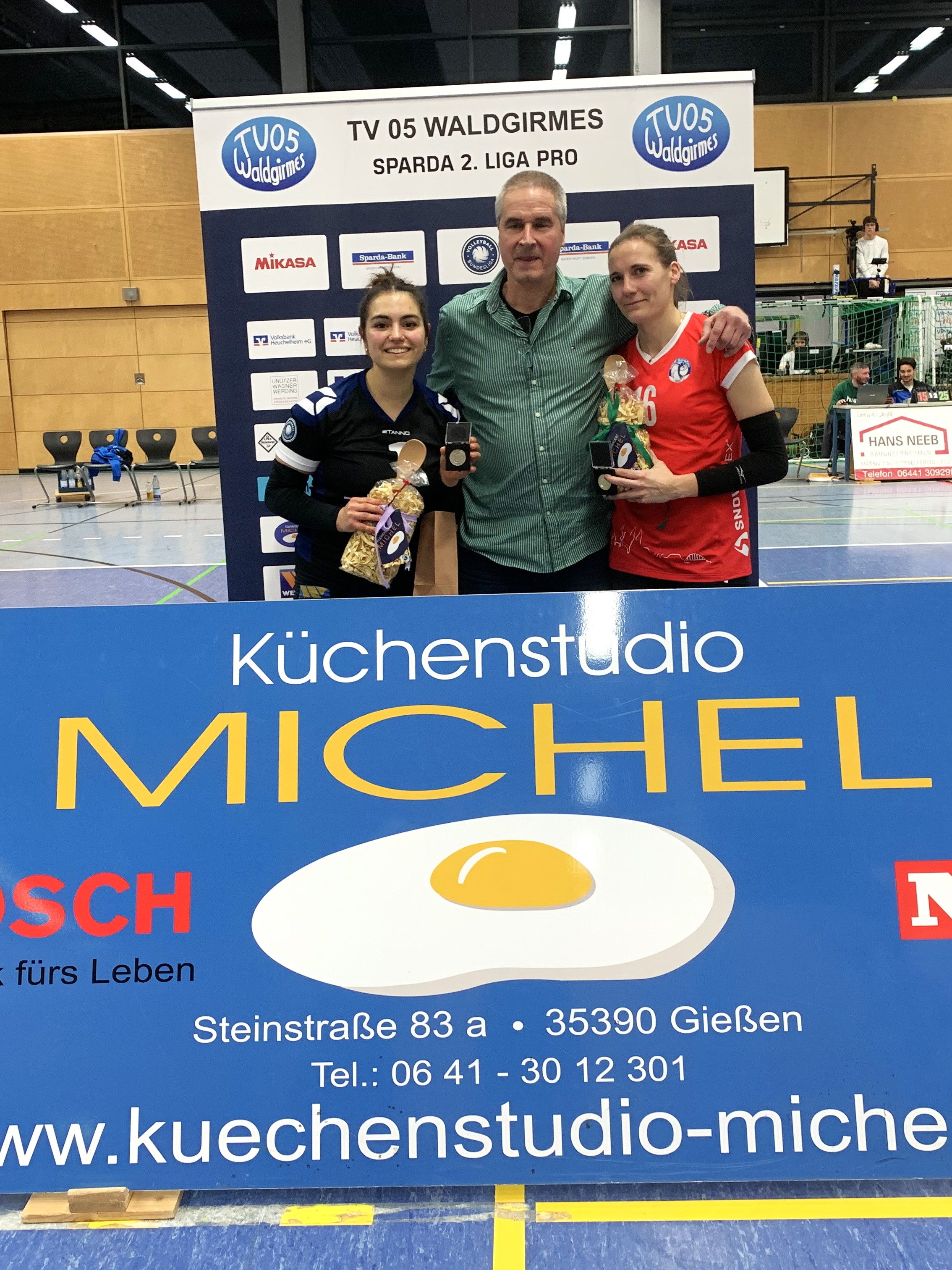 TV Waldgirmes – DSHS Köln 1:3 / 83:96 (21:25 22:25 25:21 15:25) „Schade, wir hatten die Chance auf einen Punkt,“ sagte Trainer Daniel Bock nach dem Spiel, „aber Köln hat konzentrierter gespielt und wir haben zu viele einfache Fehler gemacht.“ Kapitänin Yva Cesar ergänzte: „Krankheits- und Verletzungsgeschwächt haben uns die Körner gegen Köln gefehlt. Die Kölnerinnen haben uns mit starken Aufschlägen unter Druck gesetzt, uns nichts geschenkt und uns haben in den entscheidenden Momenten die Lösungen gefehlt.“ Tatsächlich musste Daniel Bock auf seine Hauptangreiferin Maja Löcker krankheitsbedingt verzichten und es fehlten ihm manchmal die Wechselalternativen. Immerhin konnte er Sommerneuzugang Constanze Bieneck erstmals im Angriff für einige Punkte einsetzen, doch ihr merkte man den Trainingsrückstand noch deutlich an. Die Hoffnung ruht jetzt auf dem ersten Spiel der Rückrunden am 04. Januar gegen den Tabellenzehnten aus dem Leipziger Vorort Markkleeberg. Köln gewann das Spiel verdient und in wie guter Form das Team von A-Trainer-Ausbilder Jimmy Czimek momentan spielt zeigt sich am 3:0 Sieg gegen den Tabellenneunten aus Grimma, den die Kölner direkt einen Tag später im Heimspiel einfuhren. Im ersten Satz hatte Waldgirmes einen Anfangsrückstand aufgeholt und Leonie Amann konnte mit Diagonalangriff zum 10:10 ausgleichen. Bis zum 17:17 war der Satz völlig offen, dann fünf Punkte in Serie für Köln aber Waldgirmes zwang mit einem Linien-Aufschlagass von Greta Martin Köln bei 20:23 nochmal zur Auszeit. Dann eine lange Rally und ein hauchfeiner Netzfehler von Leonie Amann die danach mit einem direkten Punkt ihren Fehler wieder gut machte. Doch Köln verwandelte mit einem tollen Linienschlag den nächsten Satzball und ging in Führung. Im zweiten Satz ein ähnliches Bild. Der TVW bis zum 20:21 durch Amann dicht dran, kann auf 22:22 ausgleichen, um dann durch einen unglücklichen Block und eine Fehlannahme auch den zweiten Satz abzugeben. Im dritten Durchgang zeigte Waldgirmes dann Top-Volleyball. Das Spiel begeisterte die Zuschauer. Tolle Abwehr und Angriffssituationen auf beiden Seiten, bei Waldgirmes im Mittelpunkt die spätere Silber-MVP Emma Dogu mit ihrer spektakulären Feldabwehr mit kleinem Vorsprung bei 15:13. Leonie jetzt die spielbestimmende Spielerin erhöht den Vorsprung mit drei Angriffen auf 19:15 und ihr war es auch vorbehalten den Ball zum Satzgewinn auf die Kölner Saitenlinie zu schlagen. Im vierten Satz dann Hoffnung bis zum 9:11 aber Köln jetzt nahezu fehlerfrei und Waldgirmes mit einer gehörigen Portion Unsicherheit bringt den Gästen einen komfortablen Vorsprung und Köln nimmt mit konzentriertem Spiel den Auswärtssieg verdient mit nach Hause.