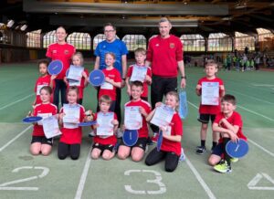 In der Herrenwaldhalle in Stadtallendorf fand letzte Woche der erste Kinderleichtathletik-Wettkampf der Saison statt. An den Start gingen die „Lahnfüchse Lahnau“, ein gemeinsames Team von 10 Kindern des TV 05 Waldgirmes und der TSG Dorlar. Bei der Premiere mit dabei waren in der Altersklasse U8/U10 Karla Baumhoff, Ilayda Bestepe, Janosch Gümbel, Lina Jordan, Amelya Merriwether, Lion Plikat, Anton und Lia Reinstädtler, Mika Welkner und Erik Wern. Unbeeindruckt von der voll ausgestatteten Leichtathletik-Sporthalle zeigte die Lahnauer Mannschaft Teamgeist und Durchhaltevermögen und konnte sich einen tollen vierten Platz von zehn Teams sichern.