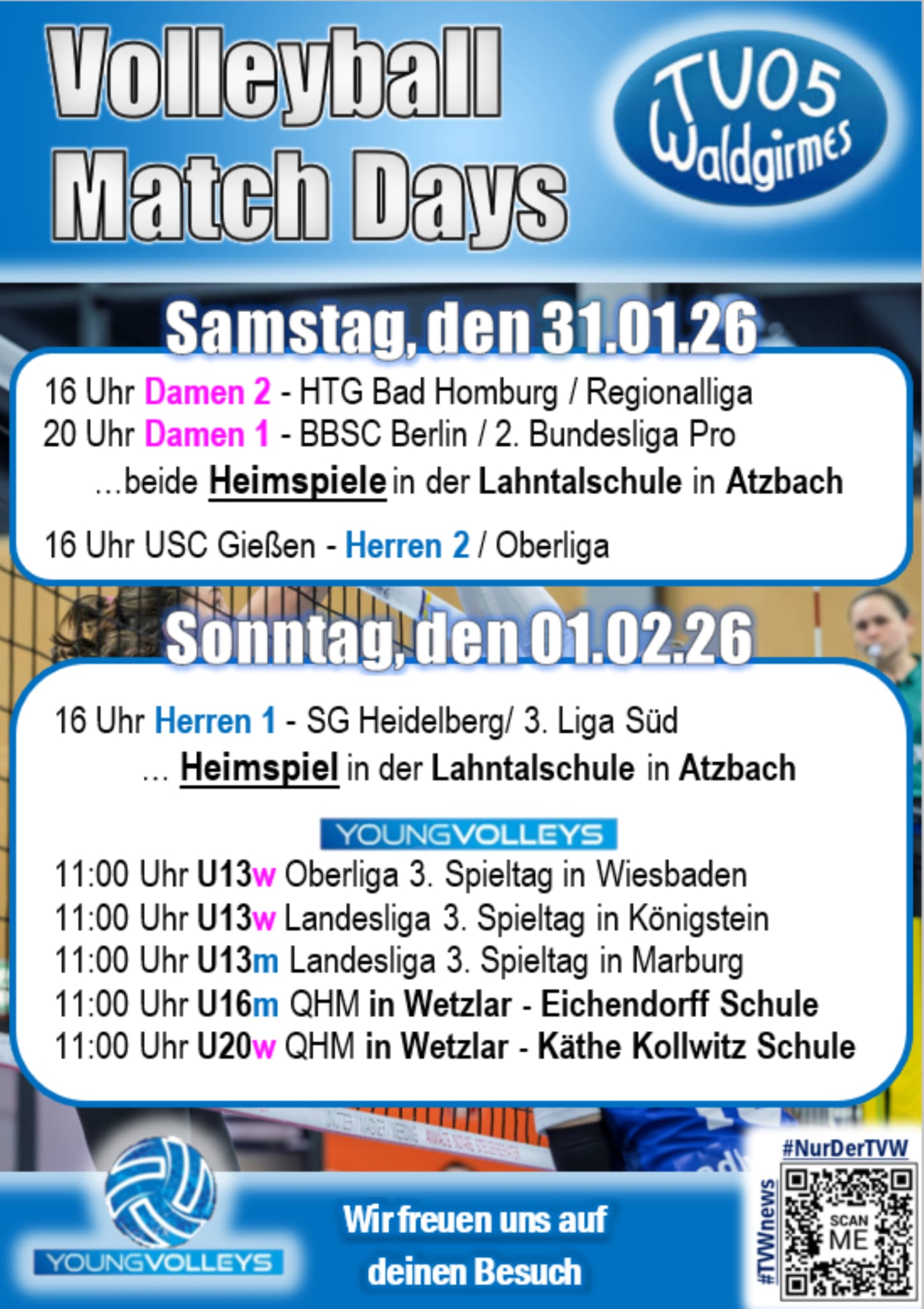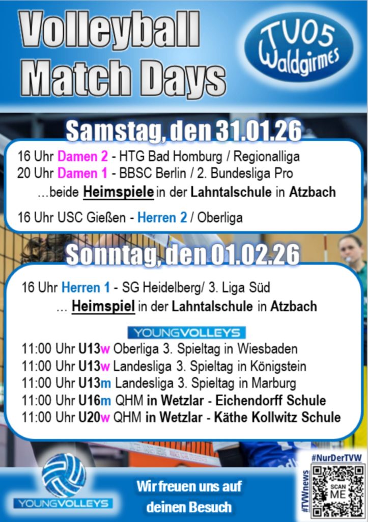 TV Waldgirmes – BBSC Berlin 3:0 / 76:59 (26:24 25:14 25:21). „Wir haben den Sieg nicht erspielt, sondern erkämpft,“ brachte es Trainer Daniel Bock nach dem klaren Heimsieg auf den Punkt. Man hatte gerade im ersten Satz nicht den Eindruck, dass acht Tabellenplätze zwischen den Kontrahenten liegen. Die Gäste aus der Hauptstadt spielten selbstbewusst und konzentriert auf und bis zum 15:15 sahen 200 Zuschauer ein absolut ausgeglichenes Spiel. Ein Einerblock von Benja Lensing und nach toller Feldbabwehr von Libera Emma Dogu der erste Zweipunkte-Vorsprung durch Benja Lensing die geschickt den gegnerischen Block anschlug. Es folgten mehrere lange Rallys und attraktive Spielzüge bei denen Berlin mit Angriffskonsequenz überzeugte und seinerseits mit 22:20 in Führung ging. Der TVW wiederum konnte mit Blockaktionen von Maret Schlinkheider auf 23:22 drehen, nach einer Dogu-Abwehr ganz knapp ins Aus dann Berlin sogar mit Satzball. Weiterlesen